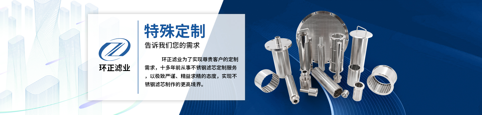 河北環(huán)正過濾器械有限公司專業(yè)生產不銹鋼繞絲濾芯、不銹鋼燒結網濾芯、不銹鋼折疊濾芯、不銹鋼濾筒濾籃、不銹鋼過濾器、濾片、等產品,環(huán)正過濾器材有限公司位于世界絲網之鄉(xiāng)——安平縣,是本地較早從事過濾器材生產的專業(yè)產家,有近16年的歷史。 我公司設備先進,管理規(guī)范,主要產品有: 不銹鋼過濾筒、不銹鋼濾芯、燒結網濾芯、各種不銹鋼過濾器、過濾袋、過濾片、錐形濾筒、